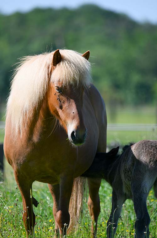 Eldkvika est une excellente jument poulinière de 12 ans. Elle a produit avec nos étalons de beaux et grands poulains, robustes, avec de bonnes articulations, présentant toutes les allures avec beaucoup de suspensions et d’amplitude. C’est elle-même une jument de grande taille, porteuse, aux articulations fortes, qui aime aller de l’avant, typée 4 allures. Eldkvika a été débourré à l’âge de 5ans et a fait 4 poulains (dont 3 jugés élite). Elle est actuellement gestante de son 5eme poulain. Nous la proposons à la vente pour cause de renouvellement de notre cheptel de poulinières. Au vu de ses excellentes origines, Eldkvika peut convenir à un projet d’élevage.