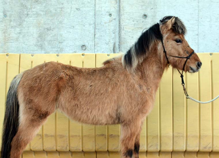 Bjarma est une jument isabelle de Hekla frá Oddgeirshólum et Bjarmi frá Lundum II. Jugement poulain : Pouliche actuellement sur bâtie, pas dans l’équilibre. Nerfs solides, dispositions aux cinq allures. Bonne charpente. Jugement 4 ans : Jeune jument, actuellement en condition de poulinière avec beaucoup de tölt naturel. Latérale au galop et réactions moyennes.