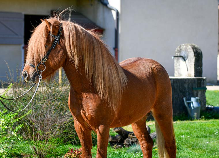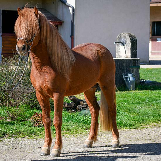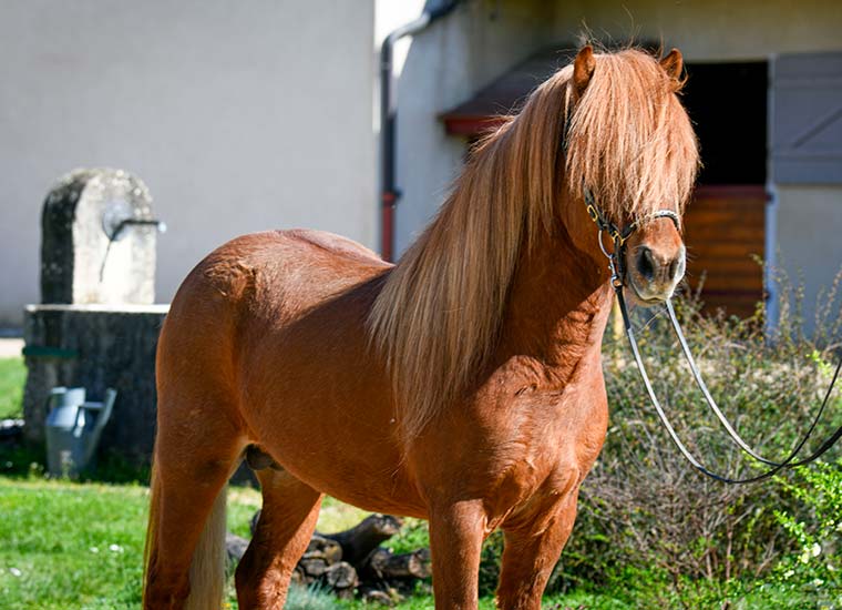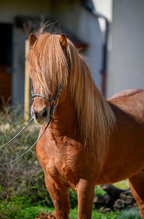 Jaguar est un jeune mâle alezan de Fjallanόtt frá Langholti et Herjólfur frá Ragnheiðarstöðum.
