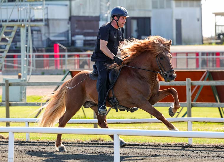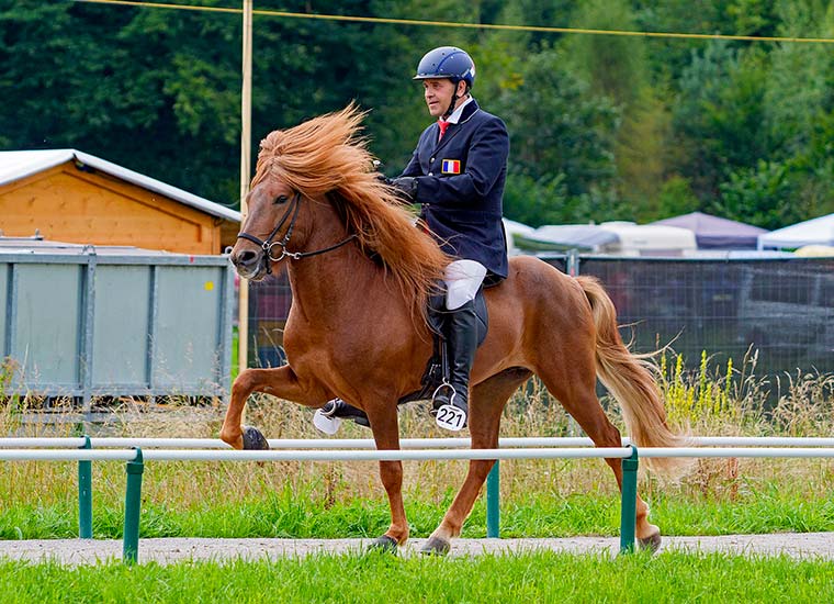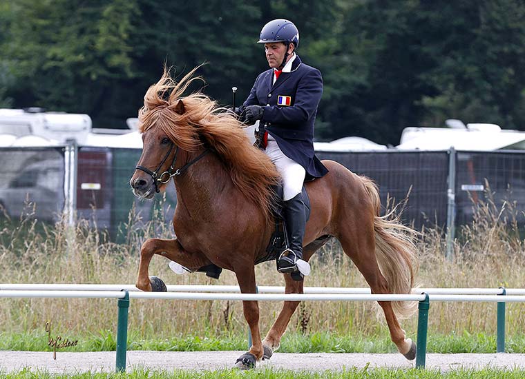 Jaguar est un cheval élégant, de belle morphologie, avec un bel équilibre dans toutes ses allures. Il présente un très joli galop bien sauté, un trot sûr et un tölt ample et fluide. Il a été jugé un FIZO (jugement d’élevage international monté). Qualifié pour les Championnats du Monde en élevage en 2025. Il a représenté l’élevage français dans la catégorie des étalons de 6 ans.