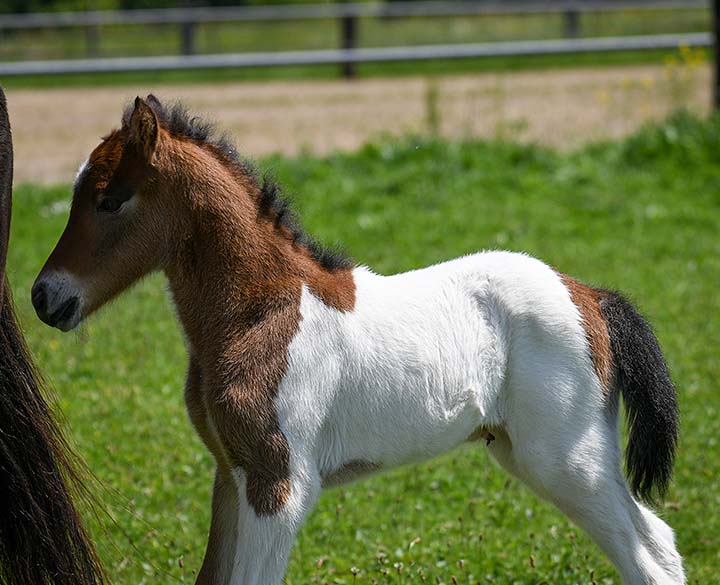 Pandóra est une pouliche pie bai de Viona frá Armoti et Gyllir du Langeren.
