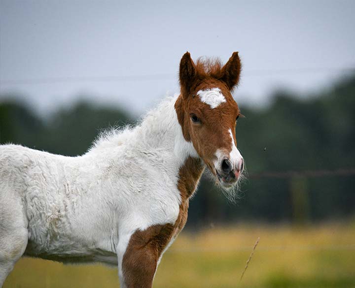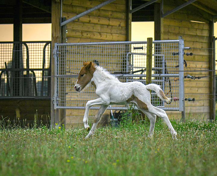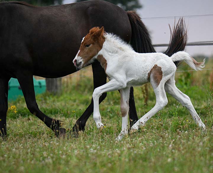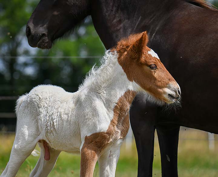 Piltur est un mâle pie alezan de Litla Perla du Langeren et Gillingur frá Langholti.