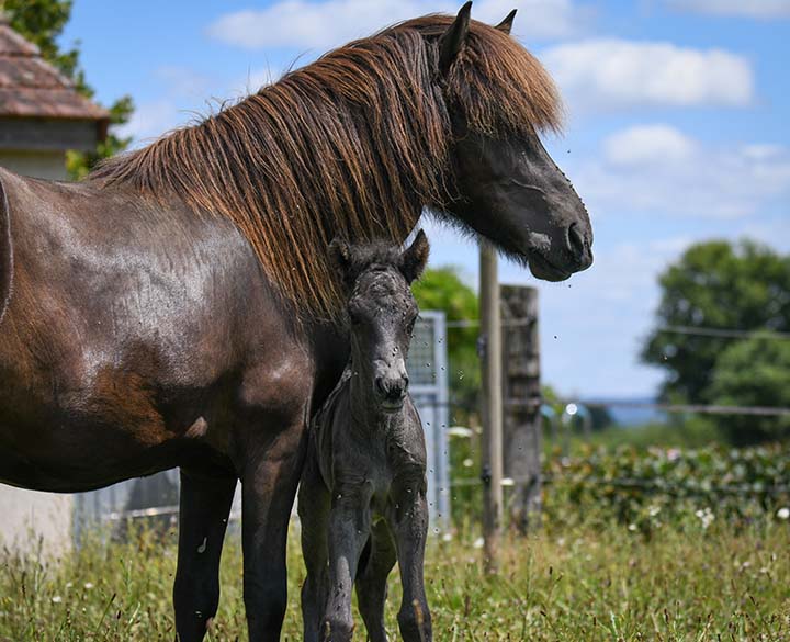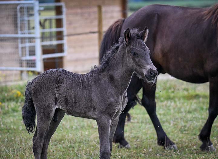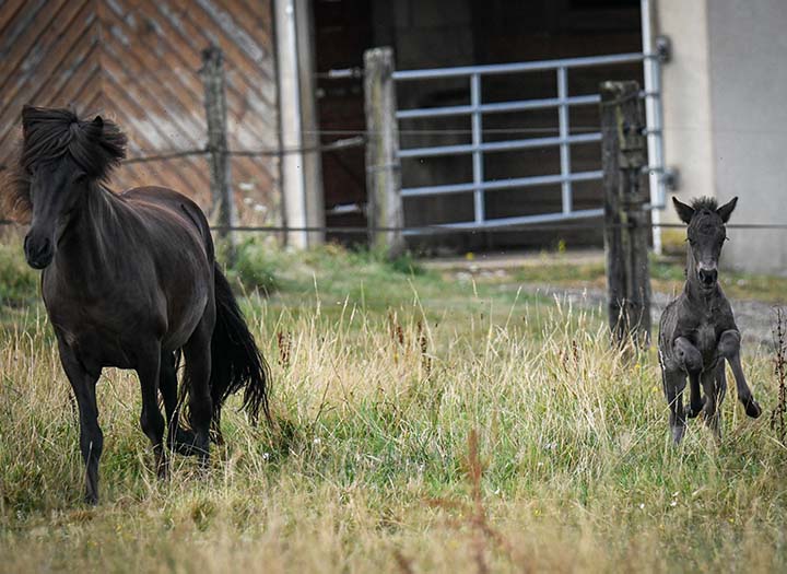 Prjónn est un mâle noir de Heimaey frá Langholti et Fimur frá Selfossi.