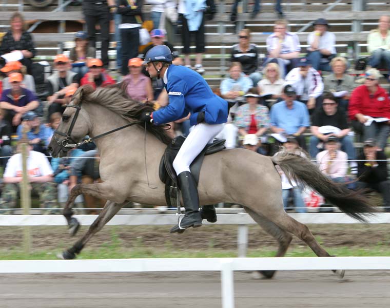 Née en Islande en 1997 à Oddgeirshólum, Hekla a été montée et utilisée dans un premier temps pour rassembler les troupeaux de moutons de l’élevage. En parallèle, Hekla a été présentée en jugement international (FIZO). Et en 2005, ayant obtenu la note de 8.40 dont une note pour les allures de 8.66 (9 au galop, tempérament, attitude), la Fédération des éleveurs d’Islande a décidé de la sélectionner pour représenter l’élevage Islandais au Championnats du Monde.